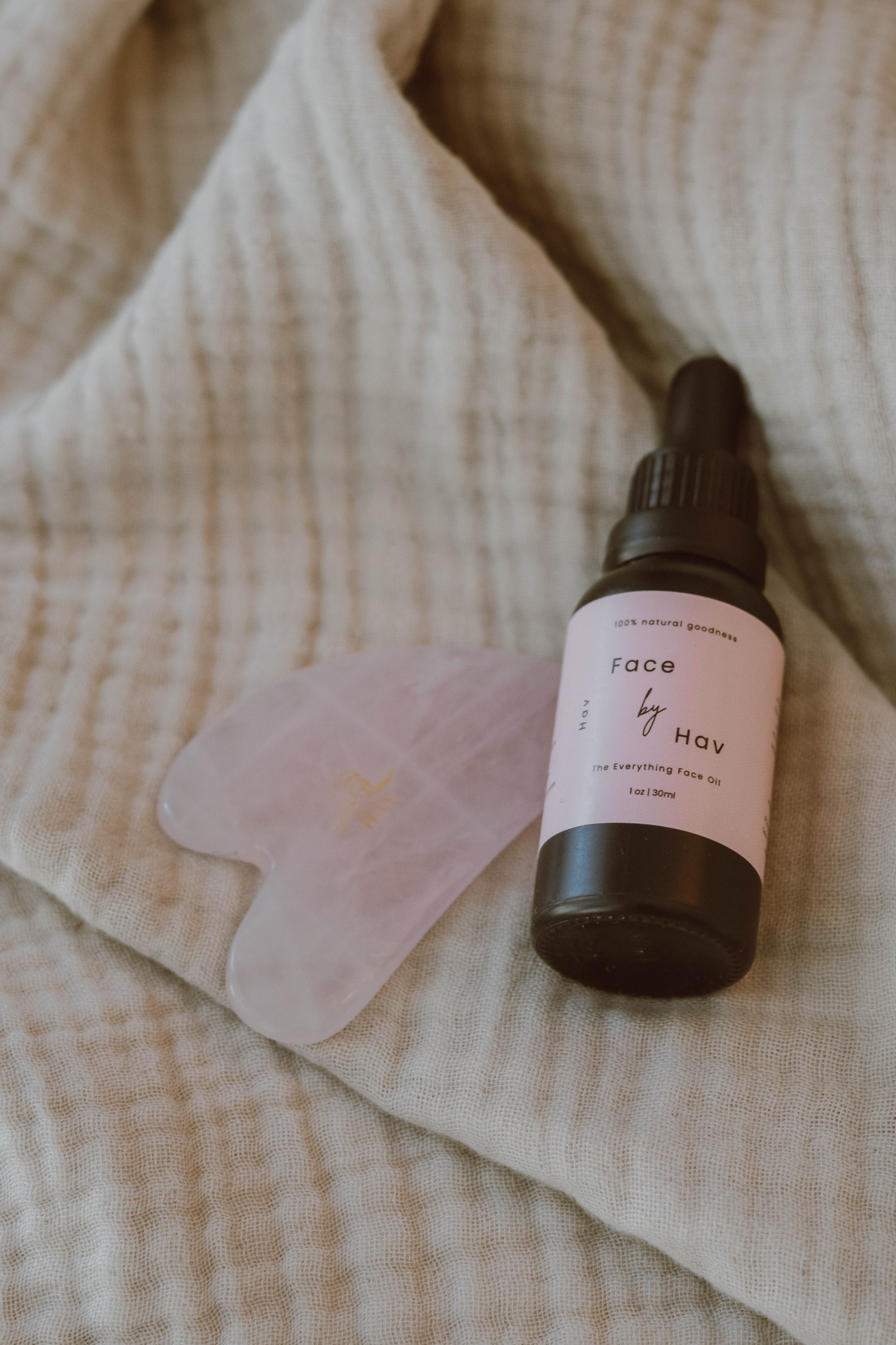 Our everything face oil, paired up with our favourite face tool the pink quartz Gua Sha for your most radiant skin ever!